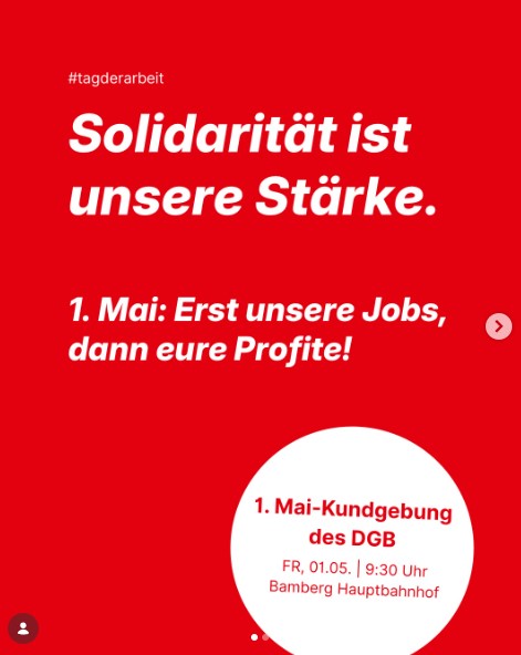 Am 1. Mai folgen wir dem Aufruf des @dgboberfranken und sind selbstverständlich am Tag der Arbeit am Start.